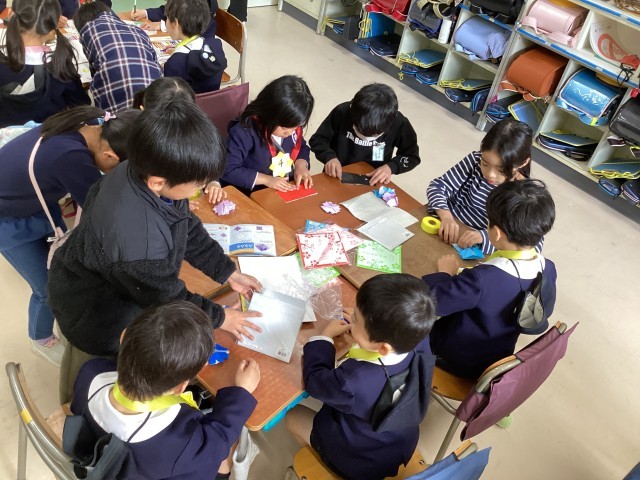 2月12日〜14日の間、年長さんが遊びに来てくれました。折り紙や塗り絵、学校探検、鬼ごっこなど、子どもたちが考えた遊びをして過ごしました。積極的に話しかけたり、教えたりしている姿が素敵でした。