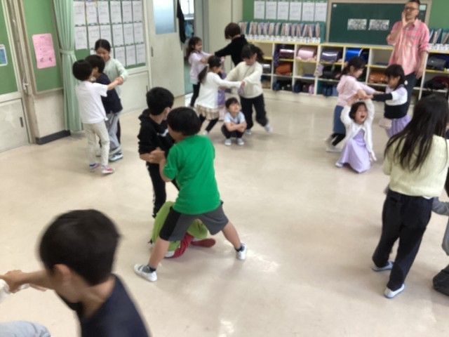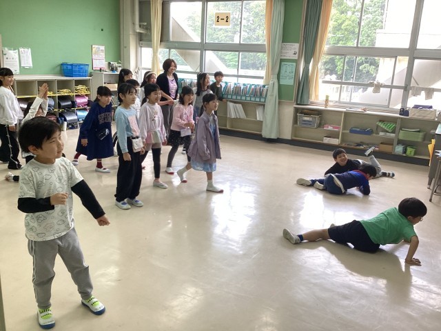 世田谷パブリックシアター劇場部の方々をお招きして、クラスづくりのワークショップを行いました。ゲームや表現活動を通して友達と交流し、楽しみながらお互いを知っていく体験をしました。