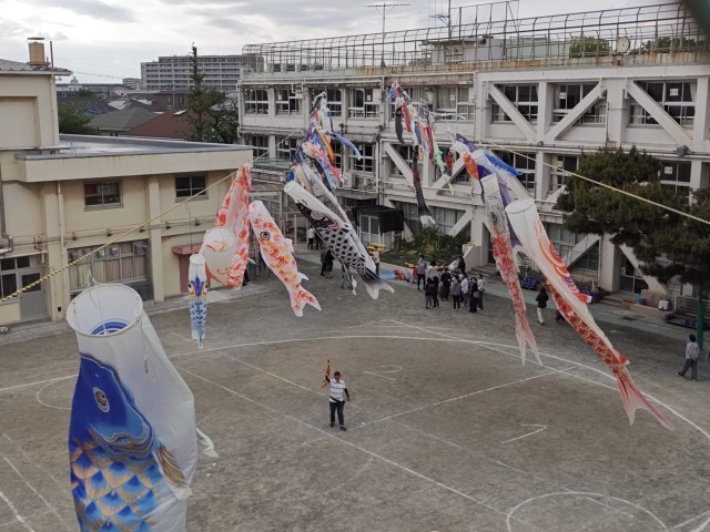 今年度も世田小地域ネットいぶきの方々をはじめPTAのご協力で大きな鯉のぼりを飾ることができました。校庭の上を泳ぐ鯉のぼりは迫力が違います。世田小地域ネットいぶきのみなさま、PTAのみなさまありがとうございました。