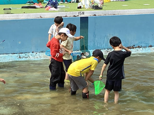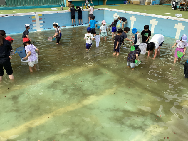 5月29日(木)にプールのヤゴを救出しました。虫が苦手だという子から「ヤゴ、かわいい!」という声が聞かれました。大事に育てて、トンボになってくれるといいです。