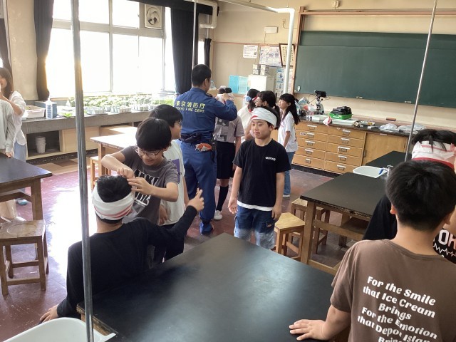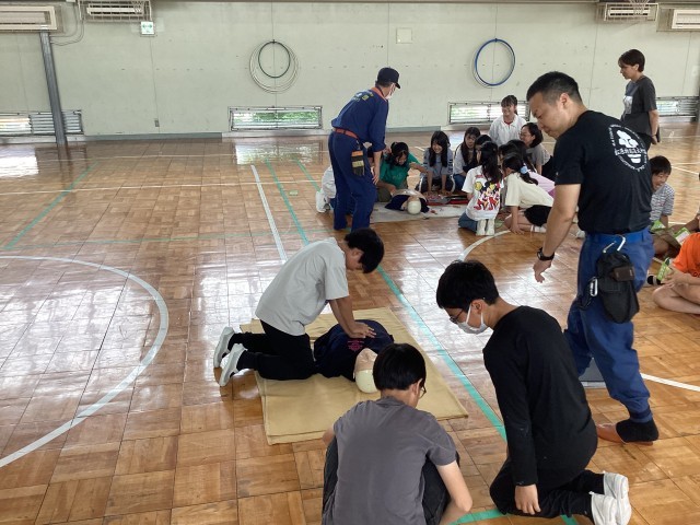6年生はAEDの操作訓練、防災伝言ダイヤルの確認、応急救護を勉強しました。