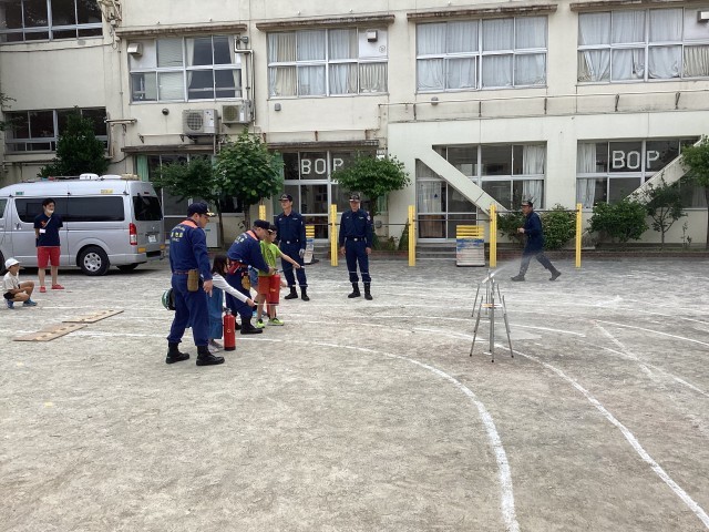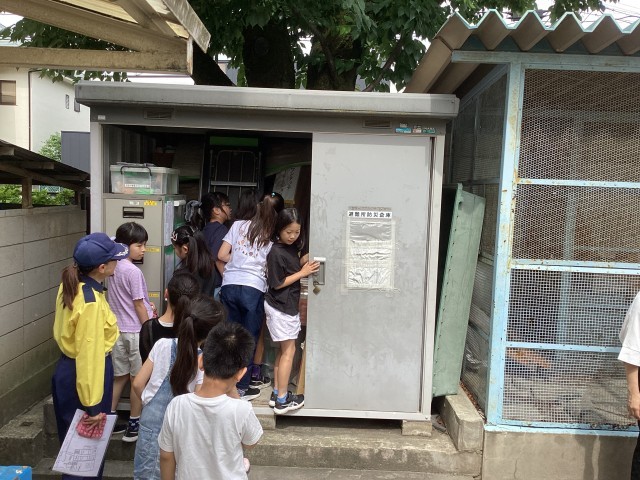 3年生は消化器の訓練や防災倉庫の確認をしました。