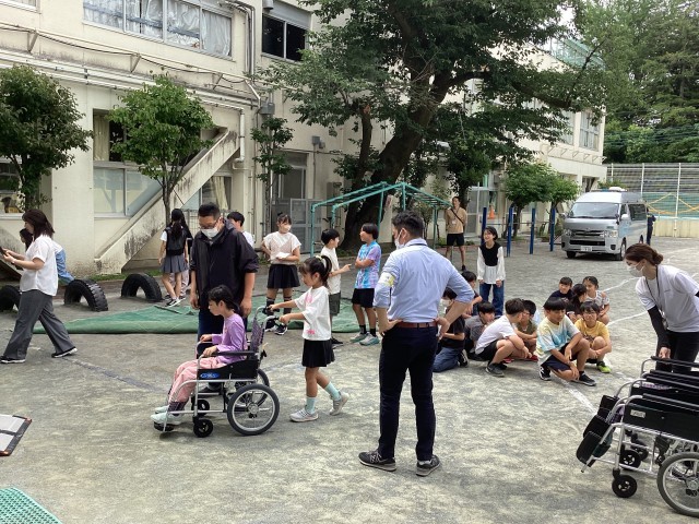 5年生はマンホールトイレや防災グッズについての学習、車イス体験をしました。