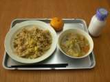 今日の給食は、そぼろごはん・すいとん・みかん・牛乳です。 風邪を心配する季節...