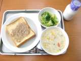 献立は 「セサミトースト、クリームスープ、ブロッコリーサラダ、牛乳」です。 ...