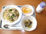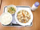献立は 「ごはん、家常豆腐、白菜の中華サラダ、牛乳」です。 今朝は5時前に−...