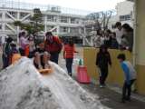 12日に作られた雪の滑り台。休み明けの14日(火)から滑り始めました。まずは仲よ...