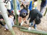 地域の方の竹林から何本もすばらしい竹を切り出しました。 凛とした雰囲気の竹林に...