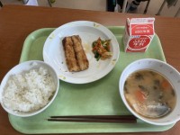 今日の給食はごはん、魚の和風ソース、わかめのサラダ、みそ汁でした。5年生では魚...