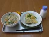 今日の給食は、みそ煮込みうどん・てんぷら(いかとさつまいも)・かぶのレモンしょ...