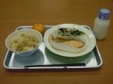 今日の給食は、里芋ごはん・魚のみそマヨネーズ焼き・おひたし・くだもの・牛乳です...