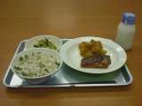 今日の給食は、磯おこわ、焼きししゃも、けんちん汁、牛乳です。 今日は、お米の様々...