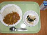 献立は 「カレーライス、和風サラダ、牛乳」です。 和風サラダにはわかめが入...