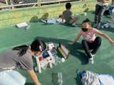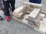 様々な材料で遊んでいます。 お城を作ったり、箱を高く積んだり、的あてゲームを作...