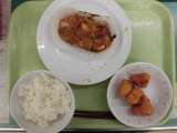 献立は、 「ごはん、さけのチャンチャンやき、あげいも、牛乳」です。 ...