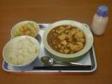 今日の給食は、ごはん・麻婆豆腐・辣白菜・牛乳です。 今日の麻婆豆腐には130...