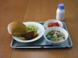 今日の給食は、セルフフィッシュサンド、ワンタンスープ、くだもの、牛乳です。 ...