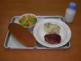 平成24年3月7日(水) 今日の給食は、黒砂糖パン・ハンバーグ・パセリポテト・...