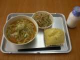 今日の給食は、サッポロラーメン・もやしとニラのごま風味・チーズ入り蒸しパン・牛...
