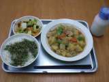 今日の給食は、ごはん・ふりかけ・肉じゃがうま煮・わかめサラダ・牛乳です。 今...