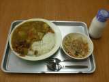 今日の給食は、カレーライス・福神漬・こんにゃくサラダ・牛乳です。 寒暖の差が...