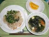 献立は、 「ビビンバ、わかめスープ、くだもの、牛乳」です。 ビビンバは、...