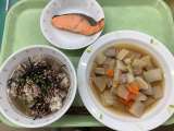 ☆こんだて☆ お茶漬け さけの塩こうじ焼き 豚肉と大根のうま煮 牛乳 ☆食...