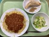 ☆こんだて☆ スパゲティーミートソース キャベツのレモンかけ アップルパイ 牛...