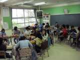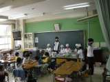 一年生も、いよいよ給食が始まりました。給食当番が白衣を着て、自分たちで配膳しま...