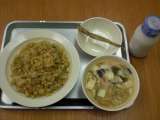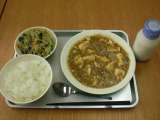 今日の給食は、ごはん、麻婆豆腐、ナムル、牛乳です。 麻婆豆腐は、豆腐を使った...