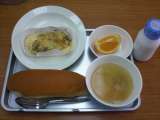 今日の給食は、ミルクパン、魚のマヨネーズ焼き、キャベツスープ、清見オレンジ、牛...