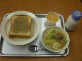 4月26日(木)、今日の献立は、ガーリックトースト、ビーンズシチュー、ブロッコ...