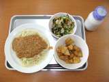 献立は 「ジャージャー麺、わかめサラダ、じゃが芋の唐揚げ、牛乳」です。 今日は...