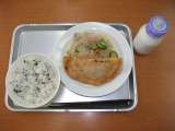 献立は 「山菜ピラフ、春雨スープ、野菜の中華かけ、牛乳」です。 現代、日本で...