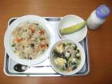 献立は 「チャーハン、卵とわかめのスープ、メロン、牛乳」です。 デザートは【...