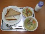 献立は 「二色サンド、ポトフ、パリパリサラダ、牛乳」です。 【ポトフ】はフラン...