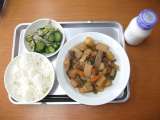 献立は 「ごはん、筑前煮、野菜のゆかりかけ、牛乳」です。 【筑前煮】は、福岡県...