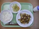 献立は 「ごはん、四川豆腐、中華サラダ、牛乳」です。 もうすぐ運動会です...