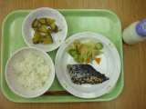 献立は 「ごはん、魚の甘酢あんかけ、野菜のごまだれかけ、ぶどう豆、牛乳」です。 ...