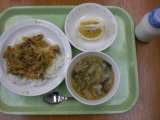 献立は 「ソース焼きそば、辣白菜、フルーツヨーグルト、牛乳」」です。 ...