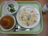 献立は 「ミルクパン、マカロニのクリーム煮、野菜のレモンかけ、牛乳」です。 ...