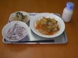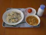 6月28日(火) 今日の給食は、五目ごはん・豚汁・シャキシャキ野菜・牛乳です。...