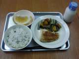 今日の給食は、わかめごはん・牛乳・さばの梅肉焼き・夏野菜の南蛮かけ・美生柑です...