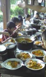 本日の二大イベントの一つである飯ごう炊飯が無事終了しました。 竈で火をおこし野菜...