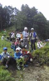山登りの疲れも感じずに 元気な5年生の子供たちはマスやイワナのつかみ取りを楽し...
