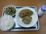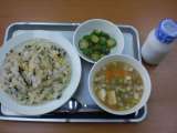 6月29日(金)、今日の献立は、青菜のチャーハン、麻婆汁、きゅうりの中華味、牛...