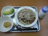 6月25日(月)、今日の献立は、冷し中華、じゃがいものバター焼き、くだもの、牛...