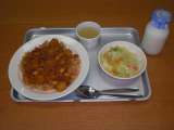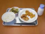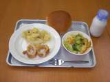 7月13日(水) 今日の給食は、ミルクパン・イカのリング揚げ・ジャーマンポテト...