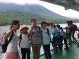 ほとんどの子供が、遊覧船の甲板に出て、波しぶきを受けて中禅寺湖を悠々と見渡しまし...