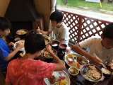 夕ご飯もよく食べました。 陶板焼のお肉も野菜も美味しかったです。 みんな元気で...